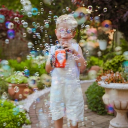 Pornește distracția cu baloane pe loc. Două sticluțe de rezervă prelungesc joaca fără realimentări frecvente.