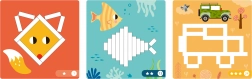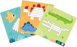 Cardurile colorate cu motive de animale și modele ghidează copiii pas cu pas, dar lasă în același timp spațiu pentru creație liberă.