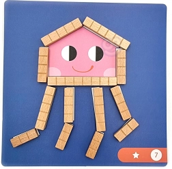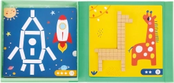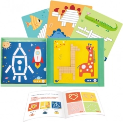 Acest set magnetic din lemn combină jocul cu învățarea. Copiii așază diverse bețe magnetice pe șabloane colorate cu animale și forme, antrenând imaginația spațială, coordonarea mână–ochi și recunoașterea culorilor. Cutia magnetică menține piesele și figurile la locul lor, astfel încât setul este ușor de folosit atât acasă, cât și în deplasare.