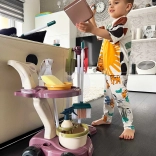 Setul imită un cărucior de curățenie real și îi încurajează pe copii să descopere responsabilitatea și grija pentru curățenie.