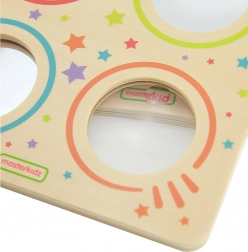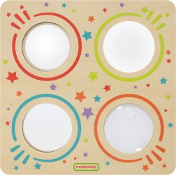 Descoperă lumea opticii într-un mod jucăuș cu panoul din lemn MASTERKIDZ. Patru elemente circulare – oglindă convexă, oglindă concavă, oglindă plană și lentilă de mărire – oferă copiilor experimente vizuale, susțin curiozitatea, conștientizarea de sine și dezvoltarea senzorială. Construcția robustă din lemn este durabilă și prietenoasă cu natura.