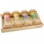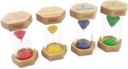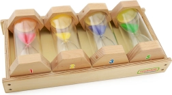 Setul de clepsidre MASTERKIDZ este un instrument ideal pentru grădinițe, școli și învățarea acasă. Cele patru clepsidre, fiecare cu o durată diferită de scurgere, le arată copiilor în mod clar cum curge timpul și îi ajută să înțeleagă concepte de bază precum secundele și minutele. Nisipul colorat și principiul simplu încurajează autonomia și percepția naturală a timpului.