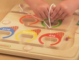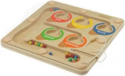 Zonele colorate marcate clar și biluțele în cinci culori îi ghidează pe copii spre recunoașterea naturală și sortarea culorilor.