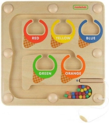 Construcția închisă cu capac transparent este sigură și rezistentă, biluțele rămân în interior și nimic nu se pierde. Copiii exersează motricitatea fină, abilitățile de coordonare, răbdarea și concentrarea când deplasează biluțele pe trasee în culorile roșu, galben, albastru, verde și portocaliu.