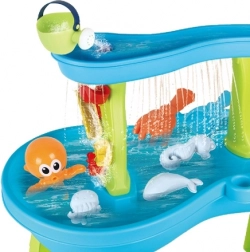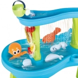 Masa de apă Octopus de la marca WOOPIE oferă o experiență unică cu apă și nisip pentru copii. Datorită 18 accesoriilor ca 3 forme, o caracatiță, o stropitoare, un coș, un colector de nisip și 2 lopeți, copiii se bucură de posibilități infinite de joc. Apa turnată în partea superioară a mesei poate curge prin deschideri sau poate învârti morile de apă. Excelent pentru joacă atât acasă, cât și afară!