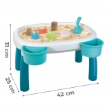 Descoperiți măsuța 2 în 1 pentru apă și nisip, versatilă, care transformă orice după-amiază într-o mică vacanță. Două recipiente separate permit combinarea jocurilor cu apă și a activităților cu nisip, în timp ce picioarele stabile și plasticul rezistent asigură joaca în siguranță acasă, în grădină sau pe plajă.