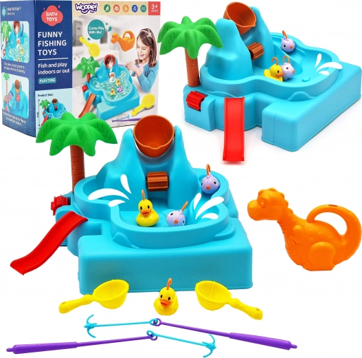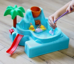 Conține diferite elemente colorate, cum ar fi peștișorii și rățuștele, care sporesc experiența estetică și distracția copiilor.