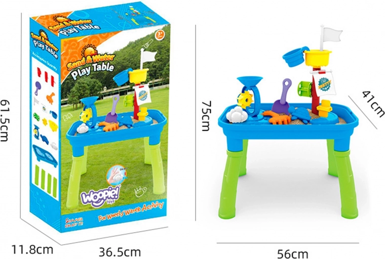 Bucurați-vă de distracție grozavă cu masa de joacă pentru copii de la Woopie, special proiectată pentru joaca cu apă și nisip. Acest set oferă multe accesorii care permit copiilor să creeze și să învețe prin joc: