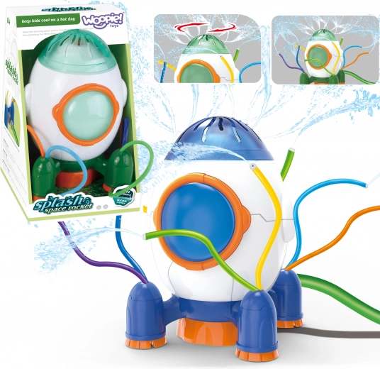 Aspersorul tip rachetă WOOPIE transformă grădina într-un loc de joacă acvatic de vară. Datorită stropirii 360° și duzelor elastice creează arcade variate de apă pe care copiii le adoră și, în același timp, ajută la irigarea gazonului. Construcția ușoară, marginile netede și materialele de calitate asigură o joacă confortabilă și sigură.