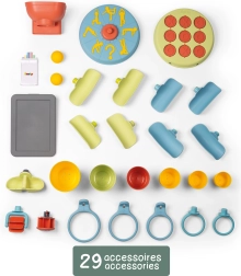 - 29 de accesorii în pachet, de ex. jgheaburi, pahare, roți cu pale, mingi, care inspiră joaca creativă.