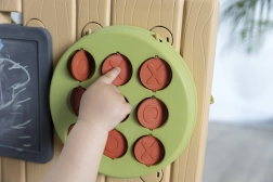 Perete de activități Smoby este o jucărie excelentă care le oferă copiilor ore întregi de distracție și, în același timp, îi ajută să își dezvolte abilitățile motorii, creativitatea și gândirea logică. Produsul este realizat din 84% plastic reciclat, ceea ce îl face o alegere ecologică. Peretele oferă 6 activități variate și până la 29 de accesorii, care pot asigura distracție nesfârșită în grădină, pe terasă sau în camera copilului.