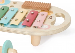 Acest set conține cinci instrumente muzicale diferite, care se potrivesc perfect mâinilor mici ale copiilor. Fiecare instrument este fabricat din lemn de calitate și pictat cu culori netoxice, sigure pentru copii și pentru mediu.