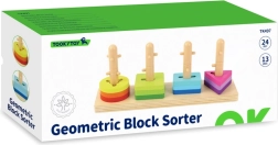 Descoperă bucuria învățării cu sorterul din lemn TOOKY TOY, care dezvoltă motricitatea fină, coordonarea mână–ochi și recunoașterea formelor și culorilor. Jucăria sigură din lemn, vopsită cu culori netoxice, oferă patru țăruși și un set de piese geometrice colorate pentru joacă inteligentă în spirit Montessori.