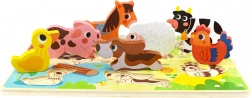 Execuția din lemn de calitate, marginile netede și vopselele netoxice asigură un joc în siguranță acasă și la grădiniță. Datorită ilustrațiilor vesele și culorilor vii, copiii își îmbogățesc ușor vocabularul și învață să asocieze formele și motivele animaliere.