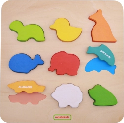 Descoperă o jucărie din lemn inteligentă pentru preșcolari – placa de sortare cu animale de la MASTERKIDZ. Piesele din lemn colorate în formă de animale îi învață pe copii să recunoască forme și culori, în timp ce susțin motricitatea fină, gândirea logică și primele cuvinte în limba engleză datorită etichetelor de pe fiecare piesă.