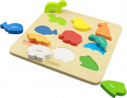 Această tablă robustă din lemn oferă forme decupate în care copiii introduc animalele corespunzătoare. În timpul jocului exersează coordonarea ochi–mână, concentrarea și percepția spațială. Fiecare piesă este clar colorată și bine conturată, ceea ce facilitează învățarea și sporește bucuria jocului.