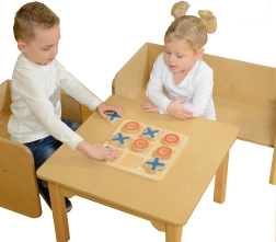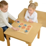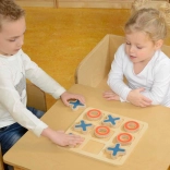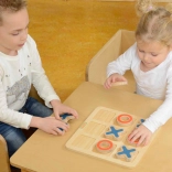 Tabla masivă din lemn și piesele mari X și O sunt rezistente, stabile și plăcute la atingere – ideale pentru mâinile copiilor.
