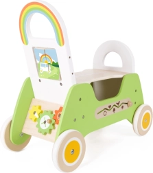 Acest plimbător colorat din lemn 2în1 combină un premergător stabil cu un vehicul distractiv de tip ride-on. Copiii se bucură de învățarea încrezătoare a mersului, de împins și de stat în șezut, dezvoltând în același timp coordonarea mișcărilor, echilibrul și jocul creativ. Datorită execuției de calitate și marginilor netede, rotunjite, este o alegere ideală pentru micii exploratori.