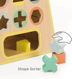 Datorită activităților diverse – de la sortatorul de forme și pista pentru bilă la roțile dințate rotative, glisoare și labirintul cu mărgele – copiii își exersează gândirea logică, răbdarea și concentrarea. Ușițele misterioase și oglinda stimulează curiozitatea și jocul de-a v-ați ascunselea.