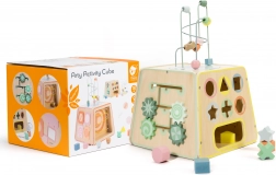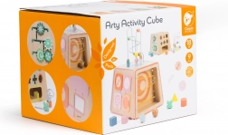 Descoperă învățarea prin joc cu cubul activ din lemn 6în1 CLASSIC WORLD. Această cutie educativă colorată oferă labirint cu mărgele, roți dințate, elemente glisante, forme geometrice și ușițe misterioase – ideal pentru dezvoltarea motricității fine, coordonării și recunoașterii formelor și culorilor.