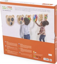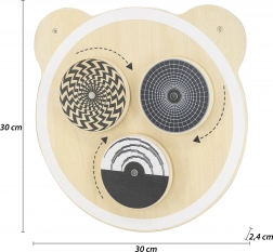 Placa de perete din lemn cu motiv de urs este ideală pentru dezvoltarea gândirii logice și a imaginației copiilor. Include trei elemente circulare care, prin rotație, creează iluzii optice și este vopsită cu culori netoxice în nuanțe vii. Această jucărie va încânta orice copil și este potrivită atât pentru acasă, cât și pentru instituții școlare.