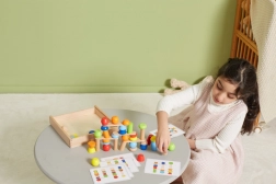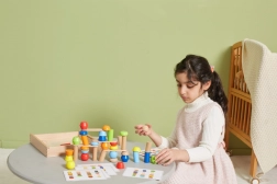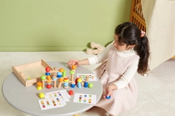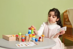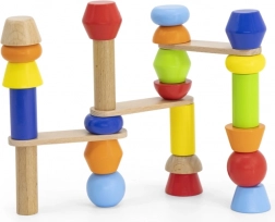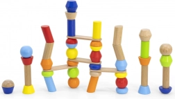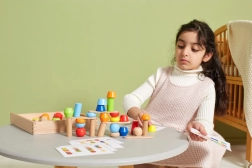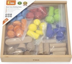 Datorită acestor construcții din lemn, copiii pot construi turnuri uimitoare după cartonașe sau după propria imaginație. Jucăria susține echilibrul, abilitățile practice, imaginația și gândirea logică.