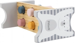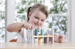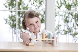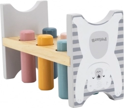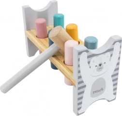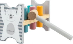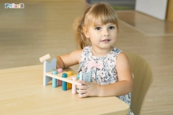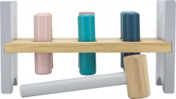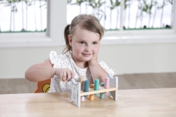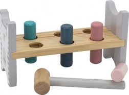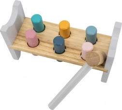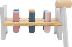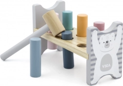 Banca din lemn colorată de la marca VIGA este concepută pentru a captiva și a dezvolta coordonarea copiilor. Sarcina principală este de a bate pivoții prin orificii, ceea ce le place copiilor și le antrenează abilitățile motorii.