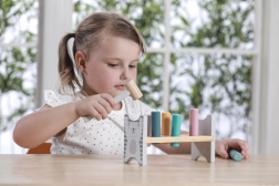 Fabricată din lemn de calitate cu culori pastelate, care nu doar că arată frumos, dar sunt și sigure pentru copii.