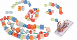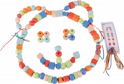 Mărgelele din lemn colorate, cu forme și culori variate, susțin motricitatea fină și creativitatea copiilor.
