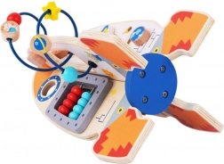 Acest set de jocuri din lemn de la Tooky Toy este conceput pentru copiii de la 3 ani. Fabricat din lemn de înaltă calitate, este acoperit cu vopsele ecologice și non-toxice. Jucăria dezvoltă în mod special motricitatea fină și observația copiilor. Fiecare parte a rachetei oferă activități diverse care stimulează imaginația, logica, memoria și mișcarea.
