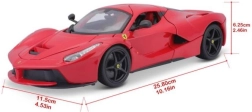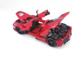 Model de mașină la scară 1:18, realizat din piese metalice și din plastic. Uși care se deschid, capote față și spate care se deschid, roți direcționale și suspensie. Ambalat într-o cutie de carton închisă, mașina este așezată într-un suport din polistiren.