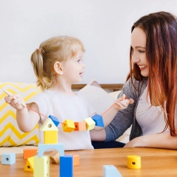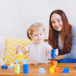 Cu ajutorul cuburilor colorate și recunoscute ca formă, copiii învață să diferențieze formele și culorile.