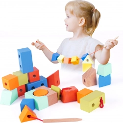 - În pachet găsiți: 21 de elemente, inclusiv 20 de cuburi și o sfoară de tras prin.