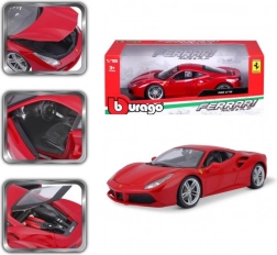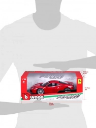 Modelul Bburago redă fidel liniile dinamice și detaliile automobilului Ferrari 488 GTB în eleganta culoare roșie. Datorită caroseriei metalice, vopselei precise și roților realiste, arată ca o mașină adevărată în miniatură. Ușile, capota și capacul motorului care se deschid îți permit să vezi interiorul elaborat și compartimentul motor.