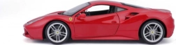 Execuție detaliată a Ferrari 488 GTB roșu, cu proporții autentice, sigle și roți sport la scara 1:18.