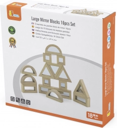 Descoperiți joaca creativă cu setul VIGA cuburi din lemn cu oglinzi (16 piese). Patru forme diferite cu suprafețe oglindă pe ambele părți susțin coordonarea mână–ochi, recunoașterea formelor și creativitatea. Construcție sigură și durabilă pentru copii de la 18 luni.