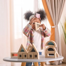Jocul dezvoltă coordonarea mână–ochi, gândirea logică și imaginația spațială. Copiii construiesc, sortează și experimentează cu simetria și echilibrul.