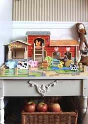 Clădirile, iazul și șase animăluțe drăguțe le oferă copiilor tot ce au nevoie pentru a-și crea propria fermă și pentru povești fără sfârșit.