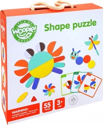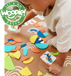 Descoperiți puzzle-ul Montessori din lemn WOOPIE GREEN cu 55 de piese și 40 de modele în 3 niveluri de dificultate. Copiii de la 3 ani își exersează într-un mod jucăuș motricitatea fină, gândirea logică, concentrarea și memoria. Piesele din lemn de calitate, cu certificare FSC și margini rotunjite, asigură o distracție sigură și de durată.