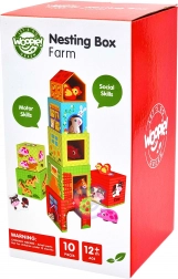 Setul de cuburi pliabile WOOPIE GREEN Fermă îmbină construcția creativă cu învățarea inteligentă. Fiecare cutie reprezintă o căsuță diferită, de la cea mai mică pentru găinușă până la cea mai mare pentru văcuță, este numerotată și ilustrată astfel încât copilul să înțeleagă ușor mărimile, ordinea și numărarea. Datorită deschiderilor, copiii pot ascunde animăluțele înăuntru și își pot crea propriile povești de fermă.