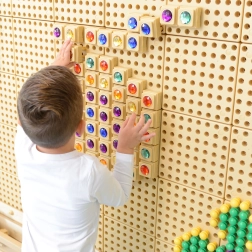 Plăcuțele cu pini asigură montare și demontare rapidă pe pegboard-uri compatibile – ideal pentru mâinile mici ale copiilor.