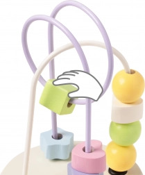 Labirintul cu mărgele oferă o provocare pentru copii, care prin deplasarea mărgelelor își dezvoltă motricitatea fină și capacitatea de concentrare.