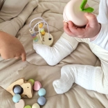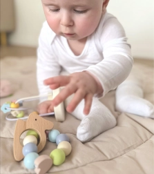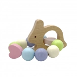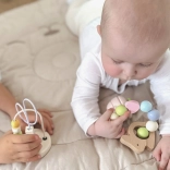 Iepurașul colorat umplut cu mărgele atrage atenția copiilor și le dezvoltă auzul. Este ideal pentru antrenarea abilităților de prindere.