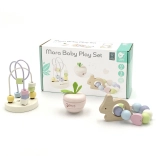 Jucăriile din acest set au o textură delicată și culori variate, făcând experiențele de joacă distractive și educative.