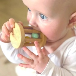 Elemente precum zornăitoarea sau cardurile susțin motricitatea fină și coordonarea mână-ochi.