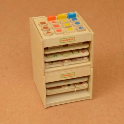 Dulap din lemn Masterkidz oferă o soluție de stocare practică și ecologică pentru tablele dumneavoastră educaționale. Cu capacitatea sa de până la trei table de 28 x 28 cm, este ideal pentru organizarea colecțiilor mici. Pe partea de sus a dulapului poate fi plasată o altă tablă, iar dacă aveți nevoie de o capacitate mai mare, puteți adăuga pur și simplu un al doilea dulap deasupra.