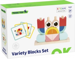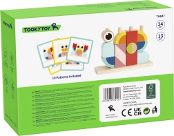 Jucăria este realizată din lemn natural, cu muchii netede și sigure, în nuanțe pastelate plăcute. Oferă modalități variate de asamblare – copiii pot reproduce forma unui crab sau pot crea propriile compoziții 3D.