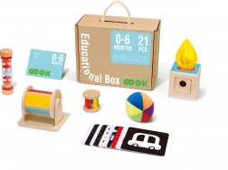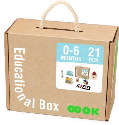Cutia educativă XXL Montessori TOOKY TOY oferă șase activități senzoriale și de dezvoltare pentru copii de la naștere până la șase luni. O metodă distractivă de a sprijini abilitățile cognitive, emoționale și motorii ale copilului tău!