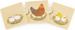 Piesele sunt realizate din lemn de fag și finisate cu vopsele netoxice, rezistă la joaca de zi cu zi și sunt sigure chiar și pentru cei mai mici. Prin asamblare, copiii își antrenează motricitatea fină, spiritul de observație și conexiunile dintre imagini. Excelent pentru joaca împreună părinte–copil sau pentru explorare independentă.