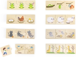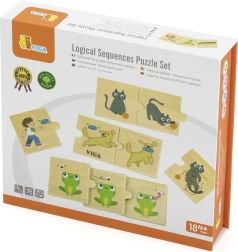 Setul distractiv și educativ de puzzle-uri din lemn de la VIGA îi învață pe copii să potrivească activitățile animalelor în ordinea corectă. Conține 24 de piese din lemn care formează 8 secvențe logice (de ex. aportul câinelui sau o girafă care rupe frunze din copac). Susține gândirea logică, vocabularul, concentrarea, motricitatea fină și coordonarea vizuală și este potrivit încă de la 18 luni.